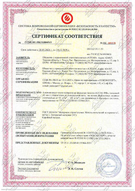 СЕРТИФИКАТ СООТВЕТСТВИЯ