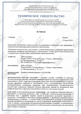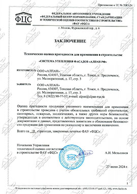 «СИСТЕМА УТЕПЛЕНИЯ ФАСАДОВ «АЛПАН РФ» от 27 июня 2024 г.